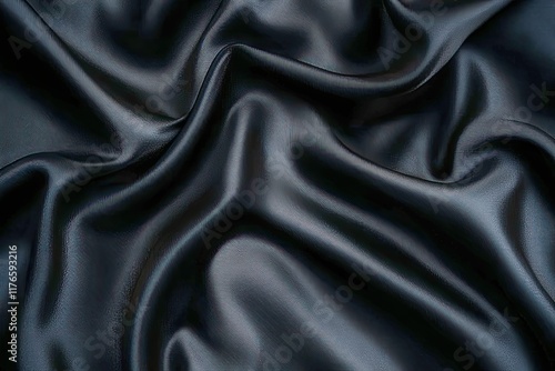 © Sharaz, Fototapeta premium Black abstract background. Silk satin velvet fabric. Elegant luxury rich. Curtain drapery fold line wave flow.