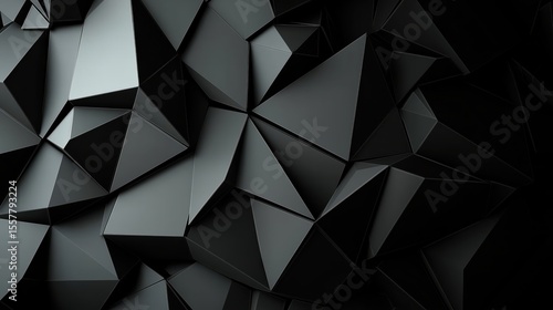 © Sipan, Obraz premium Black abstract background with low-poly geometric shapes.