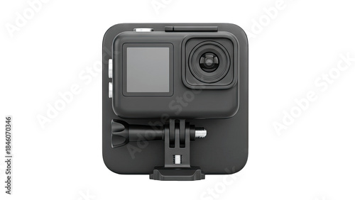 © Lensi, Fototapeta premium Black Action Camera with Mount on White Background