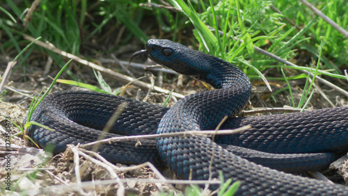 Fototapeta premium Black adder (Vipera nikolskii) sensing its prey