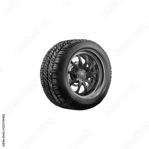 © Thuntaree, Obraz premium Black Alloy Wheel with Tire Displayed on a White Background