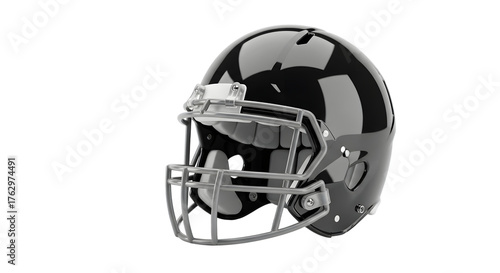 © Muksitur, Fototapeta premium Black american football helmet isolated on transparent background, a crucial piece of protective gear for athletes, ensuring safety during intense gameplay