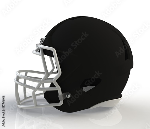 © krung99, Naklejka premium Black american football helmet side view on a white background with detailed clipping path, 3D rendering