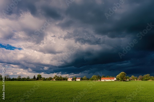 © Jannik, Obraz premium black and blue storm clouds over a green field
