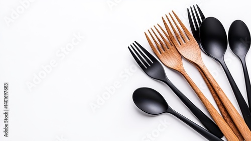 Fototapeta premium Black and Brown Eco Friendly Cutlery on White Background