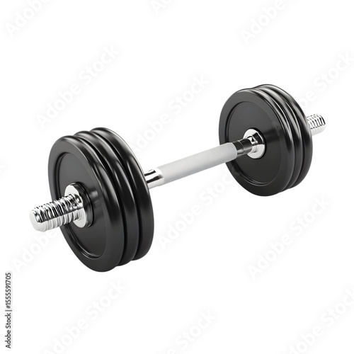 © FachriDev, Fototapeta premium Black and chrome dumbbell isolated on black background.