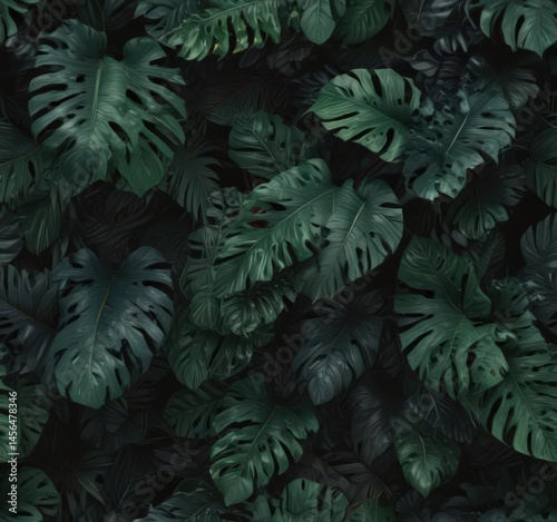 Fototapeta premium Black and deep green tropical leaves forming a bold, abstract pattern , dark...