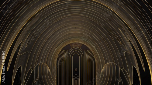 Fototapeta premium black and gold art design with thin lines and arches, logo in the middle, 16:9