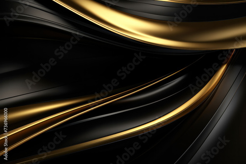 © reddish, Obraz premium Black and Gold Wallpaper With Wavy Lines