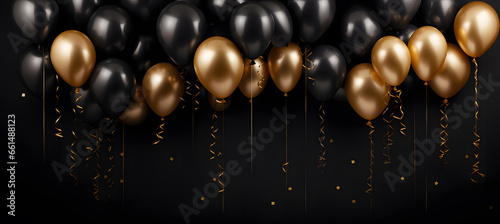 Naklejka premium Black and golden balloons with sparkles high detailed background