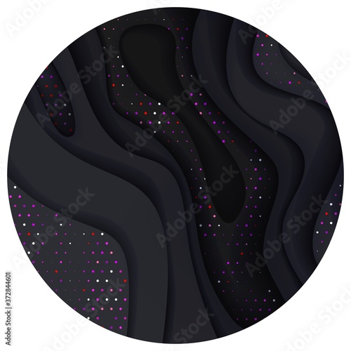 © form and form , Obraz premium Black and golden halftone effect pattern with wavy layers. Abstract realistic paper cut shapes texture. 3d luxury relief background. Vector illustration