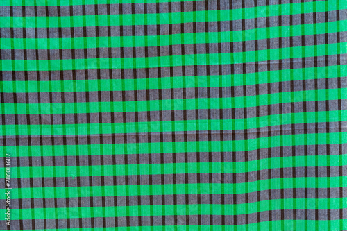 Fototapeta premium Black and green strip cotton Gamcha(Bath towel) Fabrics Close-up.