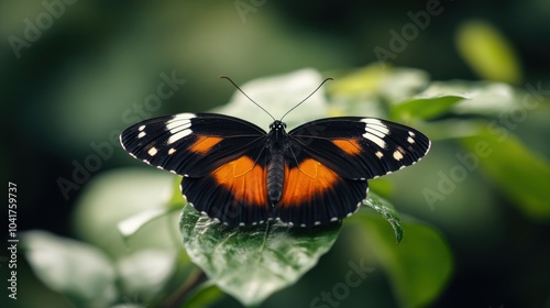 Fototapeta premium Black and Orange Butterfly on a Leaf