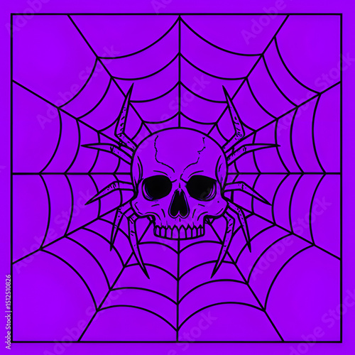 Fototapeta premium black and purple skull spider in web line art isolated halloween horror tattoo