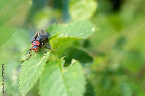 © Natascha, Naklejka premium Black and red bug sitting on leaf