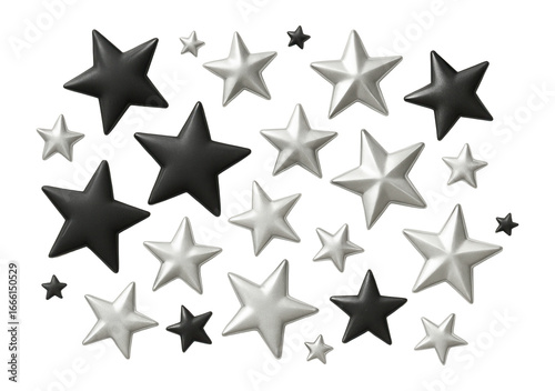 Fototapeta premium Black and silver confetti stars with smooth texture