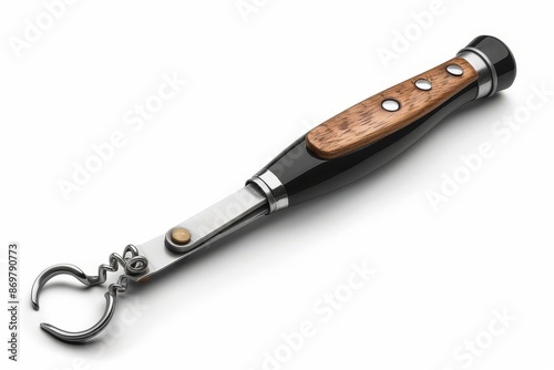 © Suphakorn, Obraz premium Black and silver metal kitchen tong with wooden handle isolated on white background.