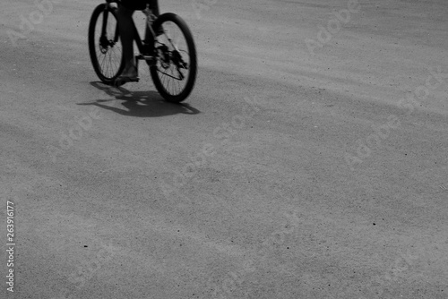 Obraz premium Black and white a bicycle against shadow on asphalt road