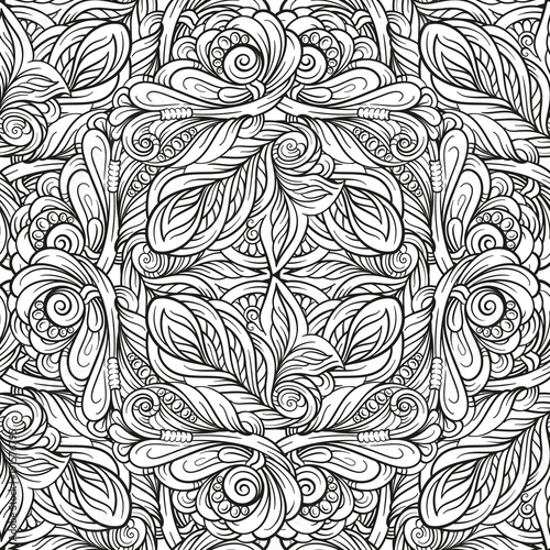 Obraz premium Black and white abstract doodles seamless pattern.