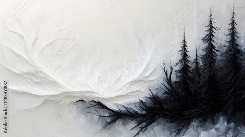 © Lintan, Obraz premium Black and White Abstract Forest Painting