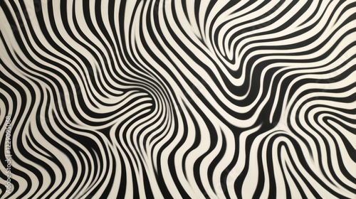 Naklejka premium Black and white abstract pattern with wavy lines creating an optical illusion...