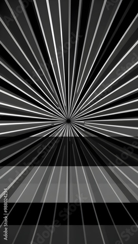 Obraz premium Black and white abstract rays converging toward the center, creating a...