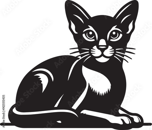 Obraz premium Black and White Abyssinian Cat Vector Illustration – Minimalist Feline Art