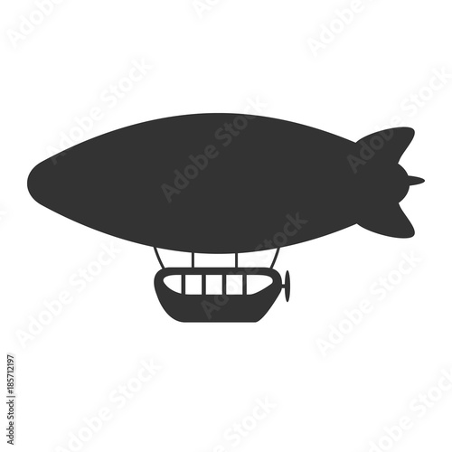 © Tae Mi, Obraz premium Black and white air balloon or airship icon isolated on background. Steampunk old flying machine in dark color. Simple vector illustration symbol