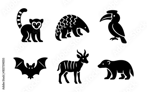 © 123levit, Naklejka premium Black and white animal icons set on a white background
