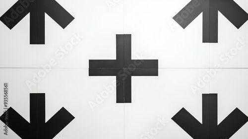 Obraz premium Black and White Arrow and Plus Sign Composition, Abstract , Minimalism ,...