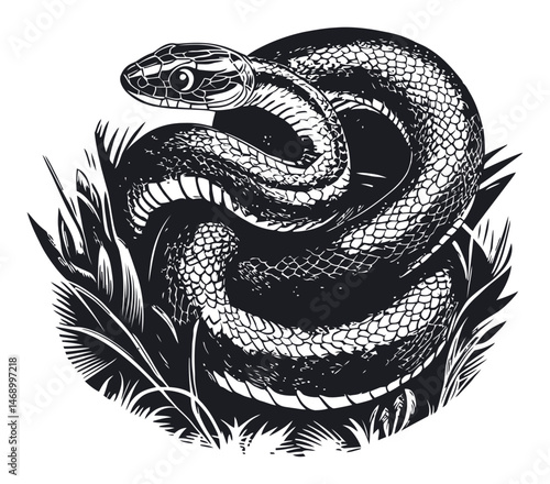 © Gasspoll, Obraz premium Black and White Artistic Illustration of a Snake in Nature