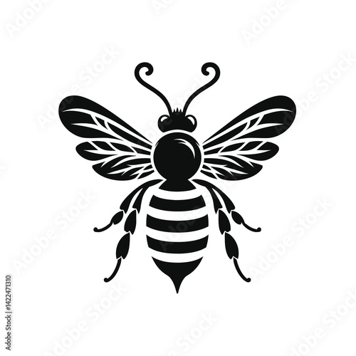 © Vectostock, Fototapeta premium Black and white bee icon silhouette vector art illustration