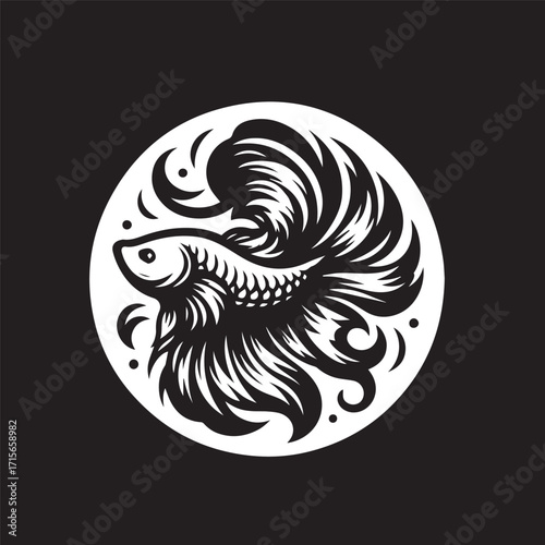 © i'uLpotra, Naklejka premium black and white betta fish logo vector
