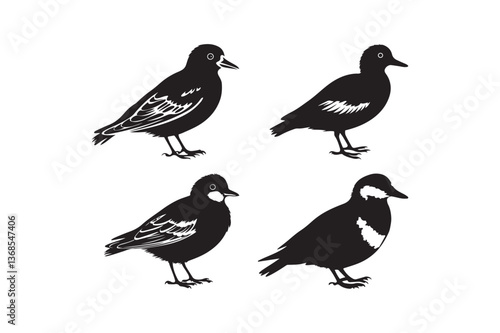 Fototapeta premium Black and White Bird Silhouette Vector Illustration Nature Wildlife Art