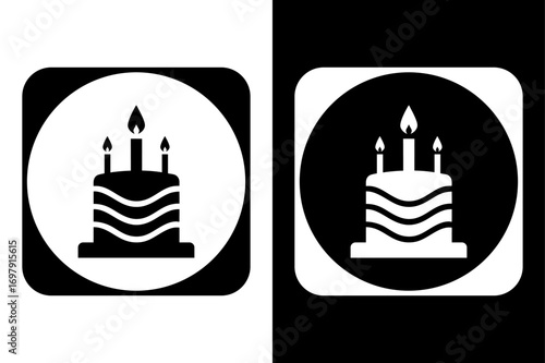 © Ali, Obraz premium Black and White Birthday Cake Icon | Candle Symbol Illustration.