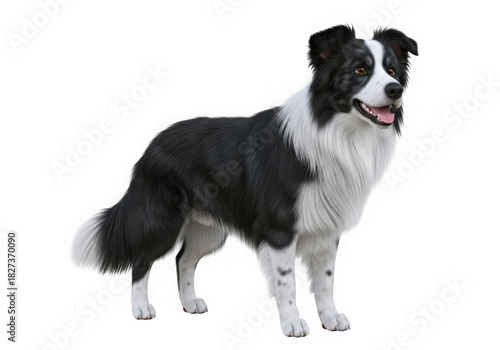 © Png stock 26, Fototapeta premium Black and white border collie dog standing, alert, isolated on black background isolated on transparent background