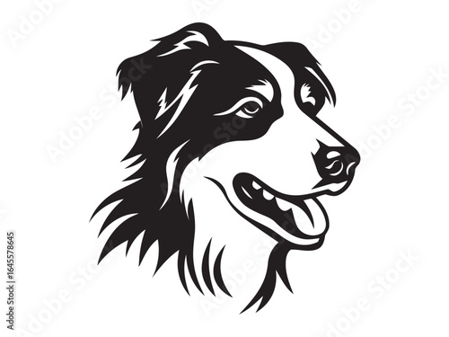 © ChardaeGhada, Fototapeta premium Black and white border collie head profile.
