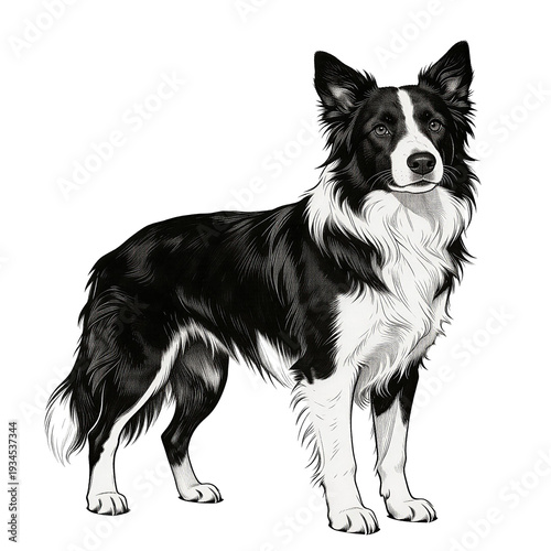 © fanjianhua, Fototapeta premium Black and White Border Collie Illustration