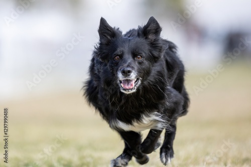 © Cavan, Fototapeta premium Black and White Border Collie Running Lure Course Sprint Dog Sport