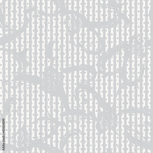 Fototapeta premium Black and White Botanical Floral Seamless Pattern with striped Background