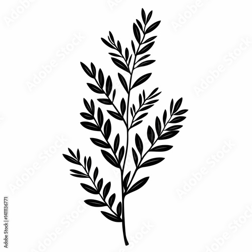 Fototapeta premium Black and White Botanical Leaf Illustration: Nature's Silhouette in...