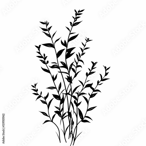 © Peiris, Naklejka premium Black and White Botanical Vector Illustration: Nature's Silhouetted Floral Design for Eco-Friendly Decor