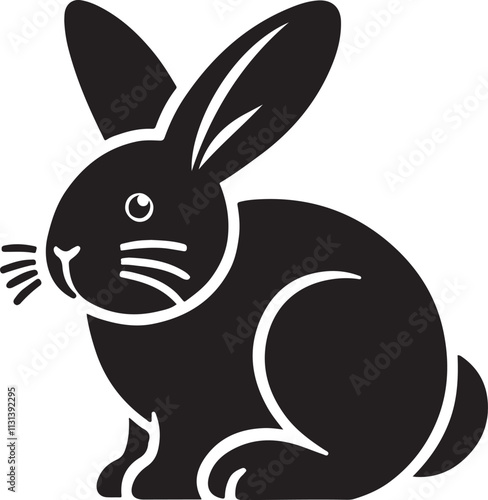 Obraz premium Black and white bunny silhouette vector illustration. icon style bunny set isolated on white background.