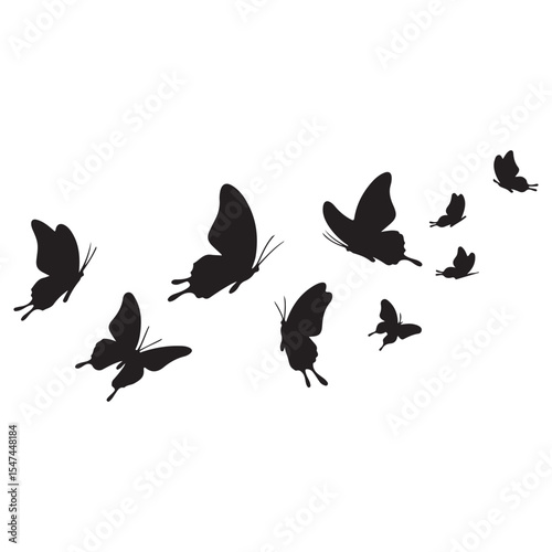 © Asia, Obraz premium Black and White Butterfly set Vector Illustration – Detailed Insect Silhouette Design
