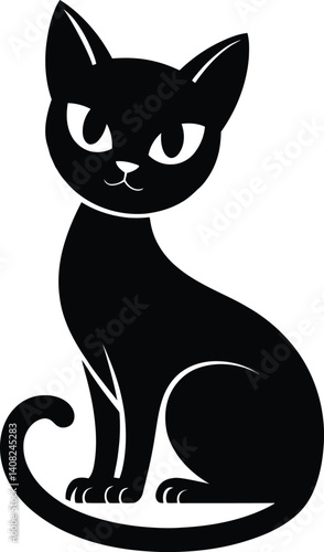 © sofikul, Obraz premium Black and White Cartoon Cat Vector Illustration