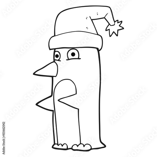 © lineartestpilot, Obraz premium black and white cartoon christmas penguin