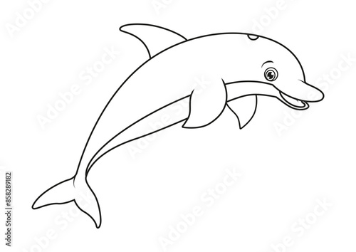 © MihaiGr, Obraz premium Black and White Cartoon Dolphin Vector Flat Designs, Ideal for Coloring Pages, Isolated on White Background