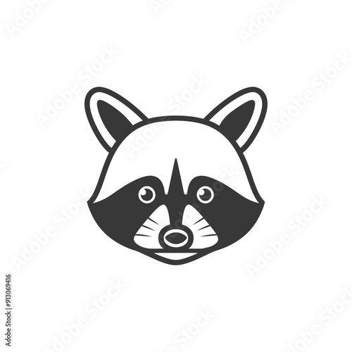 © NikahGeh, Fototapeta premium Black and white cartoon illustration of a raccoons face