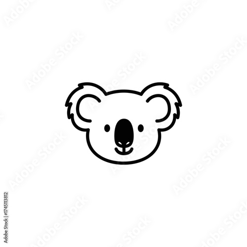 © kucret, Naklejka premium Black and white cartoon koala head with simplistic lines