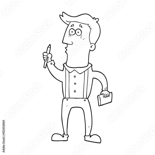 © lineartestpilot, Fototapeta premium black and white cartoon man with notebook